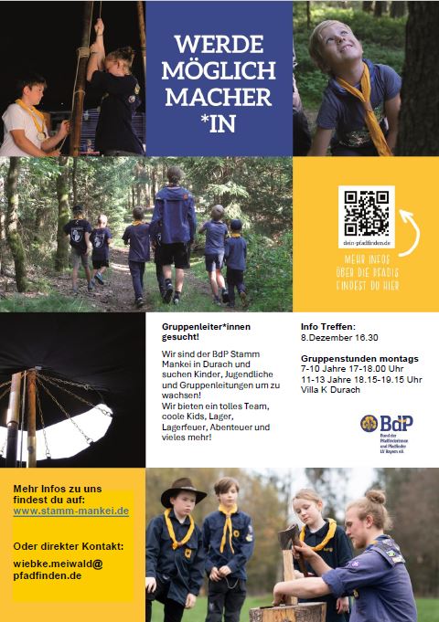 Wir vom Stamm Mankei freuen uns, dass Du bei uns auf der Seite vorbei schaust. Sie soll einen ersten Eindruck darüber vermitteln, was Pfadfinden für uns ausmacht, was wir in Durach anbieten und wie DU dabei sein kannst.